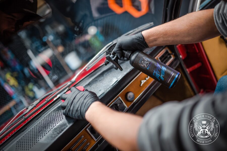 • Antes de aplicar el tratamiento interior, limpie la superficie con el Detallador de interiores BadBoys o, en caso de suciedad más intensa, con el Limpiador de plásticos BadBoys.