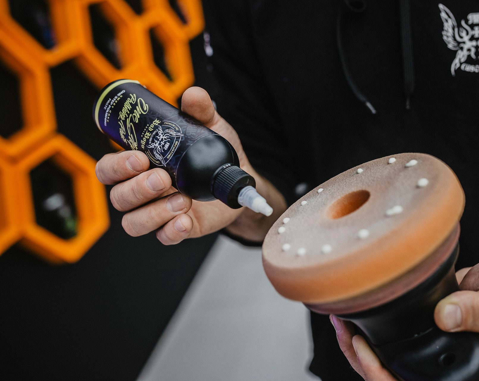 La pasta funciona con cualquier tipo de almohadilla, desde almohadillas de lana, microfibra y esponja, gracias a lo cual se puede ajustar la fuerza de corte y el acabado de la superficie.