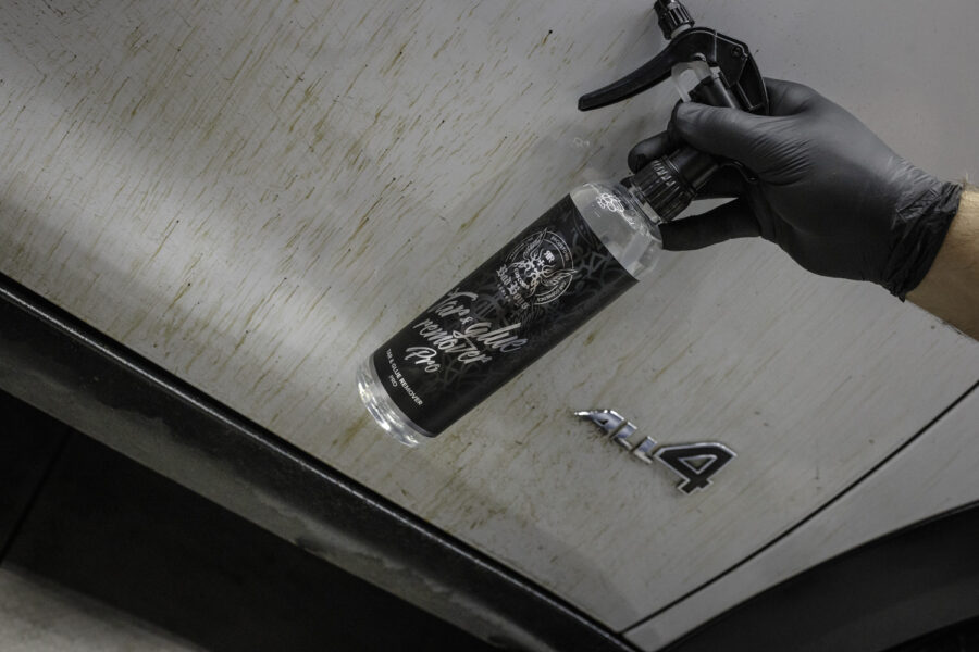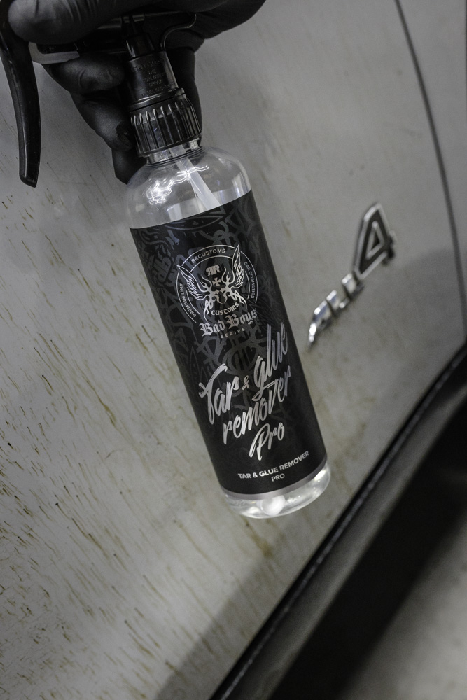 Preparado extremadamente fuerte diseñado para eliminar rápidamente los contaminantes de alquitrán más difíciles, manchas y restos de asfalto, así como pegamento endurecido por el sol de superficies pintadas y de cristal.